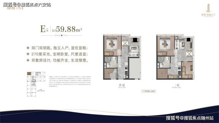 建筑面积约34-59㎡双钥匙公馆,买一层享两层,双倍空间,灵活多变,满足居住、办公、投资等多重需求,是杭州难寻的60万以下小户资产,且为实景准现房,小投入回报快,明星产品价值显著。