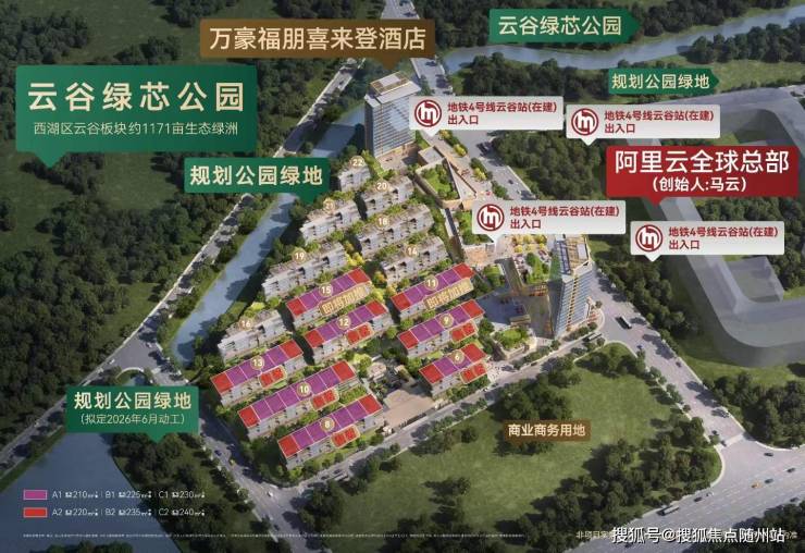 项目自带约3.88万方商业综合体,一幢已经签约万豪福朋喜来登酒店,以及主题商业街区、企业办公总部,全都和地铁站零距离。项目旁边还有千亩云谷绿芯公园、云谷学校等,未来价值不可估量。