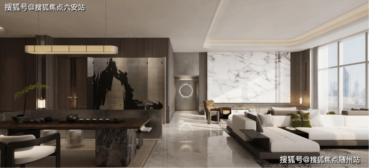 近100㎡的无界社交厅,既能满足家庭日常互动,也能承载圈层宴请、朋友聚会等需求,充分匹配高端客群的社交场景。这一奢阔方厅为家庭成员提供了多样的互动空间,无论是家庭聚会还是商务接待都能从容应对。