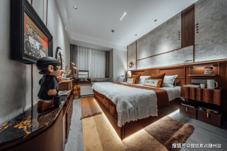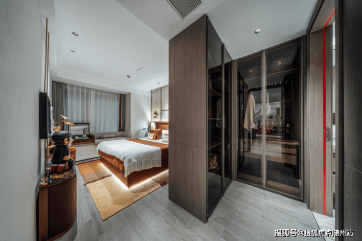 建筑面积约108㎡【光域】户型的主卧,采用酒店式套房布局,配置了独立卫浴、L型衣帽间,容量可观的橱柜里,除了我的衣服,还有我的贝儿随时陪着我,私密又美好,让幸福这里无限蔓延。
