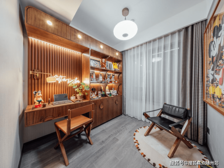 建筑面积约108㎡户型美好生活展餐厅边柜里,放着我四处收集的好酒,周末叫上几个研发的伙伴,或者发小,一起玩玩游戏,品品酒,张弛有度的生活方式,才是情绪最好的舒缓剂。”