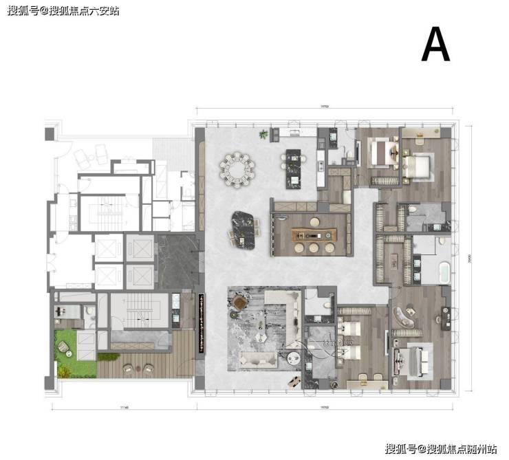 主力户型突破传统隔断思维,采用“双洄游动线+岛核聚落”布局:16米南向面宽构筑全景社交厅,7.2米挑高空中花园实现四季场景切换。独立规划总裁书房(配独立电梯入口)、40㎡名品衣帽间及可容纳12人宴会的开放式餐厨系统。卫浴空间标配汉斯格雅境雨花洒与劳芬智能座厕系统,主卧套房面积达90㎡,创新设置双起居厅模式,满足商务社交与家族生活的复合场景。