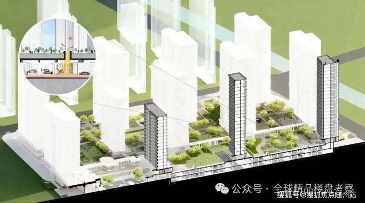 为彻底消融城市与社区的界限,项目以“超级底盘”重构社区基座。通过抬高地库、整合车站与商业配套,将地下空间转化为多功能垂直枢纽。