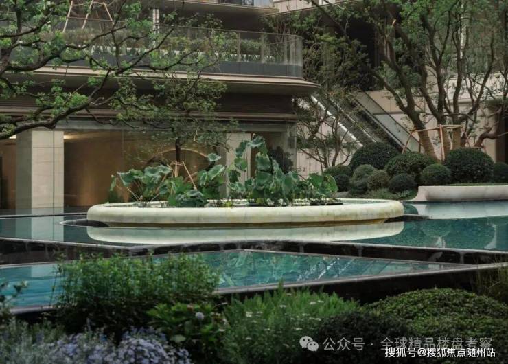 庭院景观以西湖荷花为核心设计元素之一,水桥的形态则借鉴并转译西溪湿地的自然肌理,使整体空间在文化意象与自然特征之间建立关联。