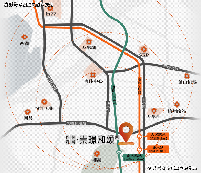 近享地铁2号线、15号线(规划中),直达奥体与钱江新城,日常出行便捷高效,事业生活随心切换;距湘湖景区直线距离约1.2公里,南江公园、杭州乐园在侧(数据来源于百度地图),享受自然美景不必远行,随时开启一场绿意鲜氧中的漫步。