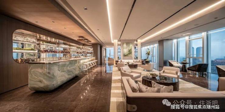 【意趣丰盈的会所】项目会所位于51层,以高定「云端六境」,聚“社交、会晤、私宴”等复合型功能,呈现惬意天际生活空间。