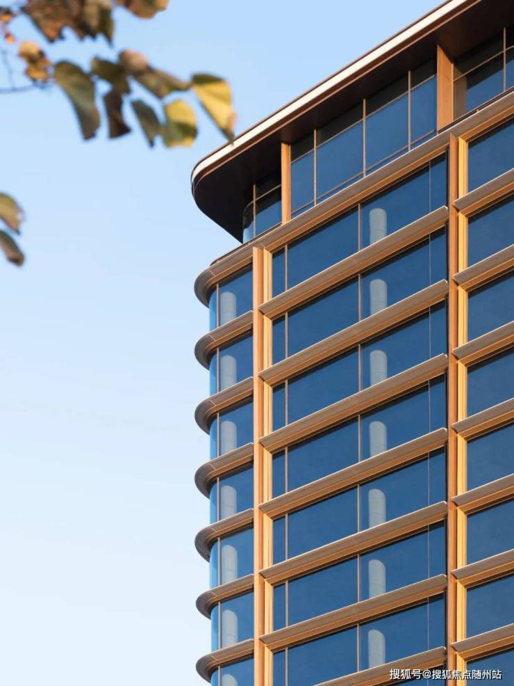 鎏金地标,东方意境:建筑以“水波·玉石”为灵感,独创3.0白金油画框立面,浅灰玻璃幕墙与香槟金铝板交织,倒映湖光云影,宛如一幅动态水墨长卷。北立面罕见采用与南向同规格设计,窗墙比达44%,以“金镶玉”美学致敬东方经典。