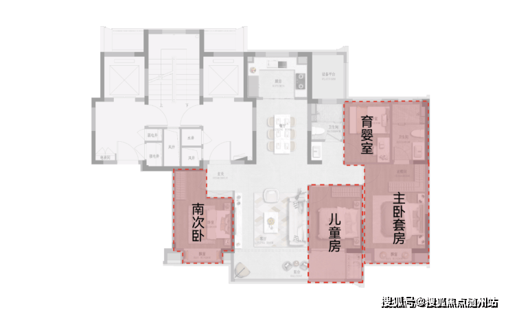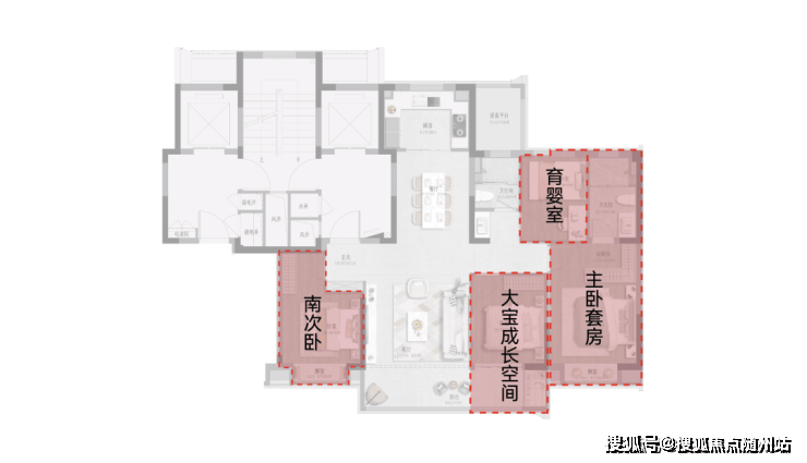 最重要的是,与主卧相邻而产生的心理亲近感,则将“二宝”降生对大宝带来的“独宠剥夺感”大大降低,同时长辈/保姆独立空间带看也能更为周到。