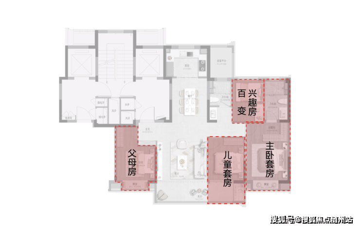 阖家团圆是烙在中国人骨子里的精神追求,小家庭的幸福之余,如何为逢年过节前来一聚或是退休后过来同住的父母留出足够舒适的天地?悦东上境府建筑面积约130㎡「幸福魔方」户型,早就为你打算好了。