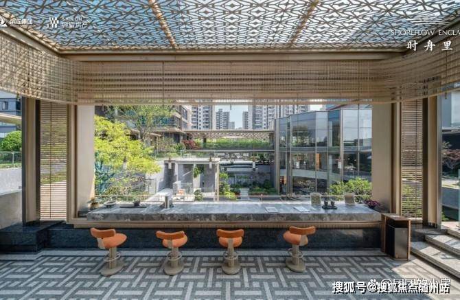 其中下沉水院作为关键归家场景之一,以水为引,叠瀑飞流,对景廊架,还有风景连廊,搭配波光粼粼的镜面水景和绿植点缀。架空层空间打造成书吧、私宴接待厅等友邻生活空间等。