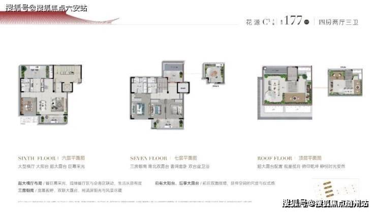如建面约170㎡的双层下叠四房两厅三卫,约9.7米面宽,三开间朝南的大四房格局。约6.9米面宽,两房朝南;南向房间一字拉平,北向也设置房间,但确保每一层空间,与院落、阳台或露台衔接,迎接漫天漫地的阳光与月光。