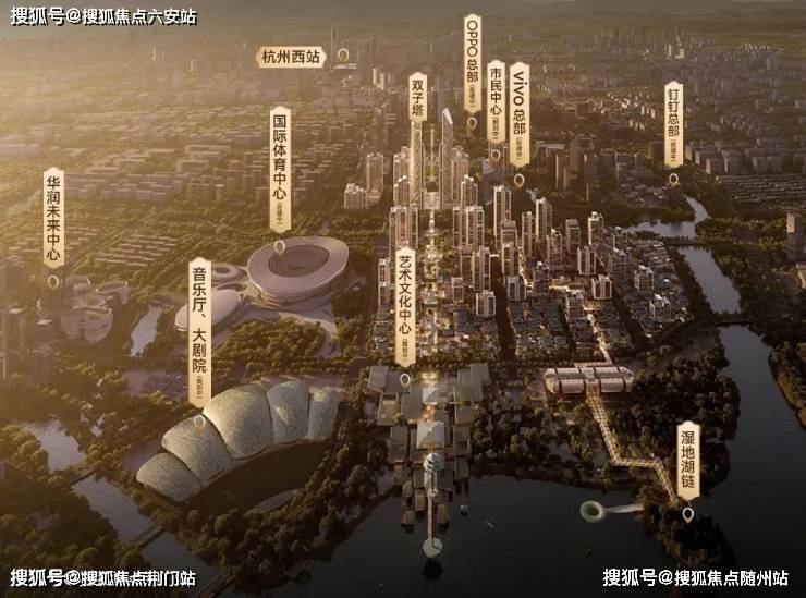 企业总部扎堆:OPPO移动终端研发总部、字节跳动华东中心(145米地标)、vivo全球AI研发中心、钉钉全球总部相继落位