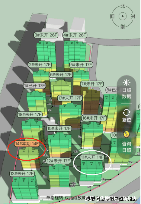 同时,14号楼与前后楼幢的楼间距有33-37米,视野更为开阔。