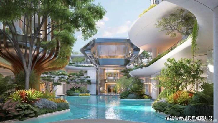 配置方面,规划有超百米宽大门、下沉式庭院、会所、恒温泳池、健身房、私宴厅、全域风雨连廊等。
