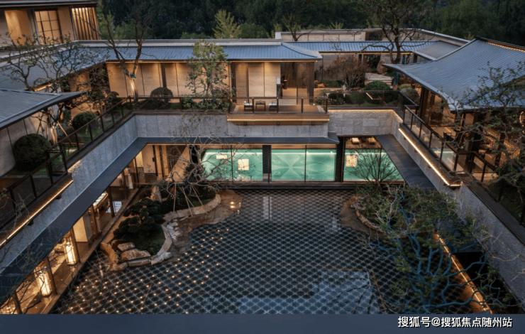 下沉式庭院内,“曲院风荷”“双峰插云”等西湖景致被巧妙融入园中,无论是私宴厅还是会客区,四季美景皆可尽收眼底。