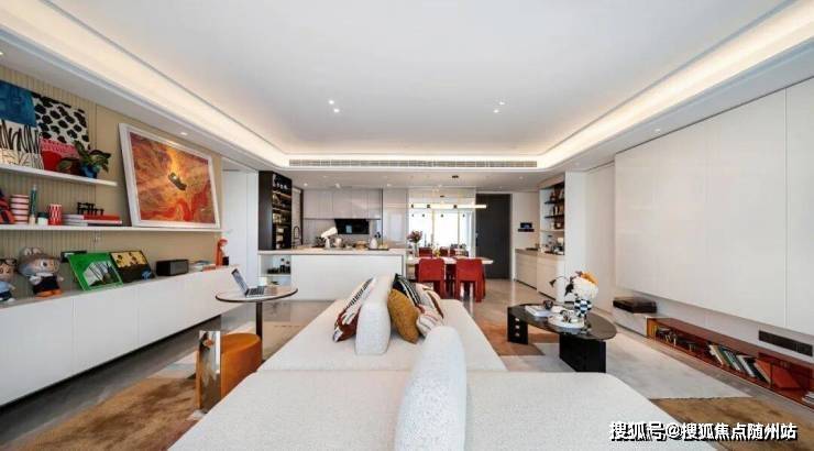 客餐厅地板通铺,视觉延伸更显大气,从玄关到阳台,一步一景;