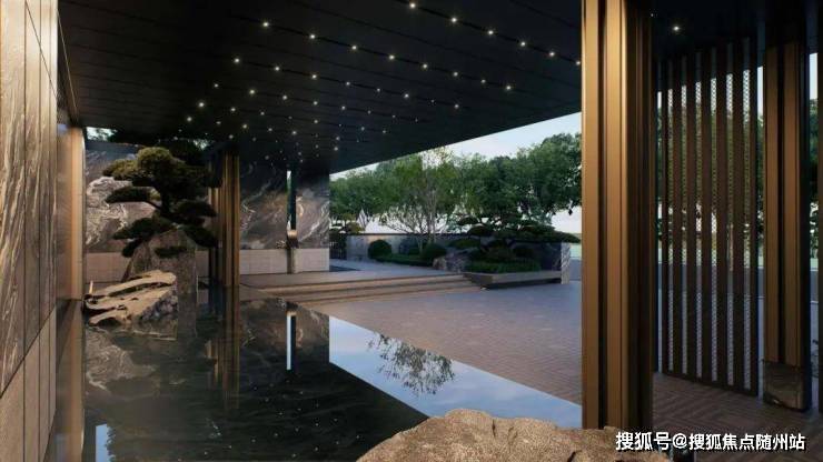 而门口的墙面,更是用大理石与绿植山石装裱出一幅立体的山水画,在垂直立面上演绎“石中有画,画中有境”的宋式空间美学。