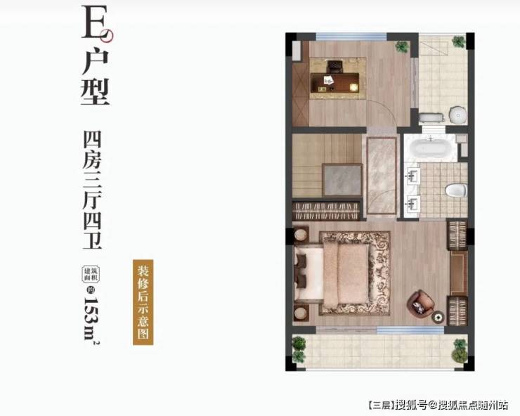 以建面约153㎡排屋为例,4房3厅4卫的布局,不仅处于奉化价格洼地板块,产品也可圈可点。