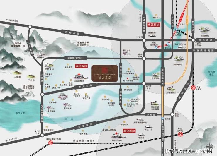 从华元·溪山华庭项目出发,走甬金高速转世纪大道可一路直达宁波东部新城。