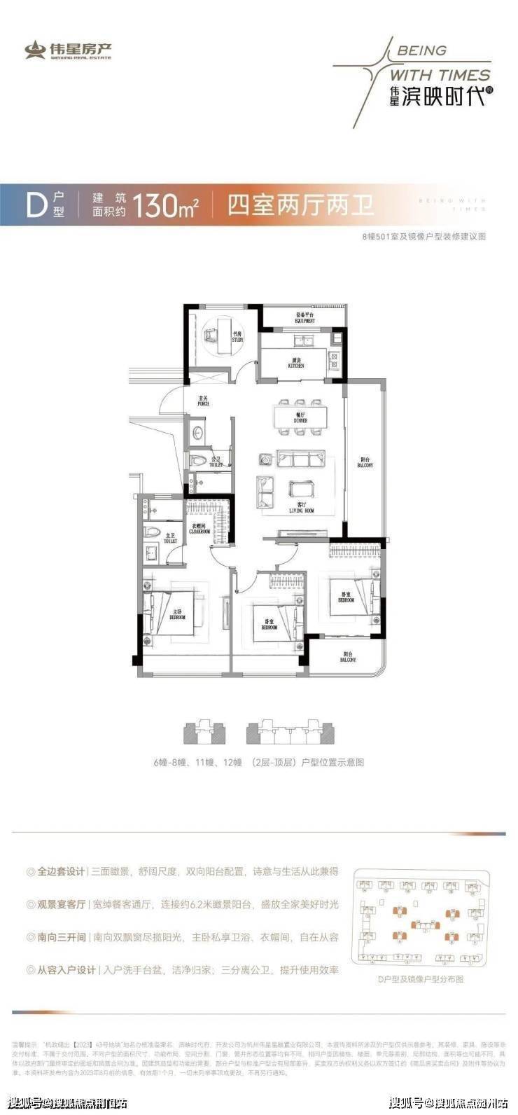 备受青睐四房户型建面约130㎡,在同样优越采光的同时,以更大的空间尺度,小家化的主卧设计,打造尊崇私密兼备的改善热选户型。