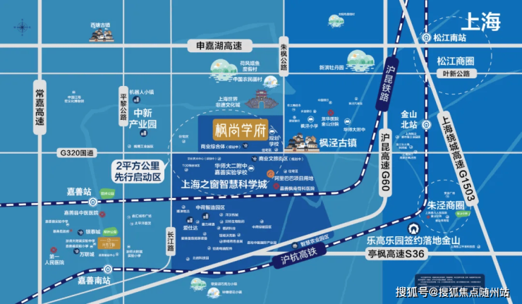 项目位于上海之窗智慧科学城核心板块,与上海枫泾古镇仅一路之隔。2026年轨交南枫线枫南站(规划中)开通后,可无缝换乘上海地铁9号线,通勤效率提升50%。