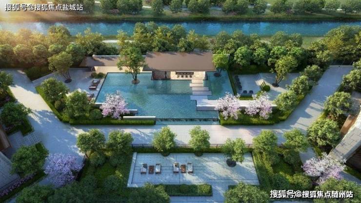 社区外部沿河景观廊道,铺陈花园小品设计,赋予居者一方徜徉水岸,沉醉于自然诗意,在城市繁华中拾起自然的生活乐趣。