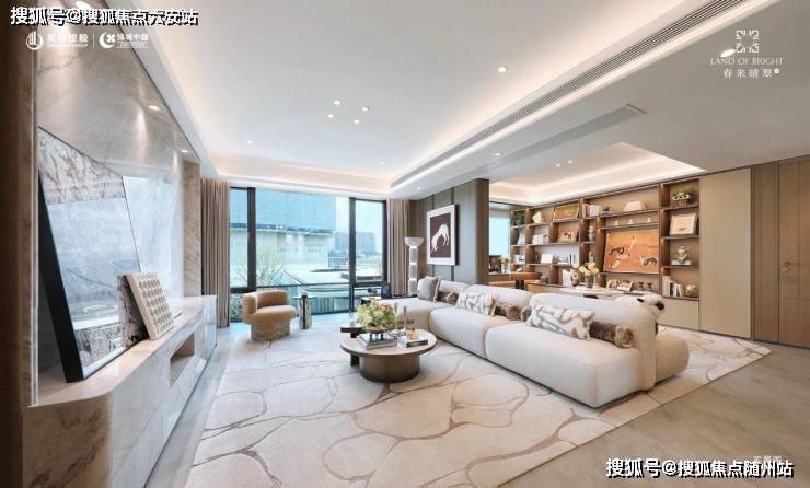 客厅的背景墙四周,不仅嵌满一面面吊柜和储物格,展示柜还装上灯带和玻璃门。你收藏的各种隐藏款Labubu,这里就是最好的舞台。春来晴翠园称之为“情绪收纳”。