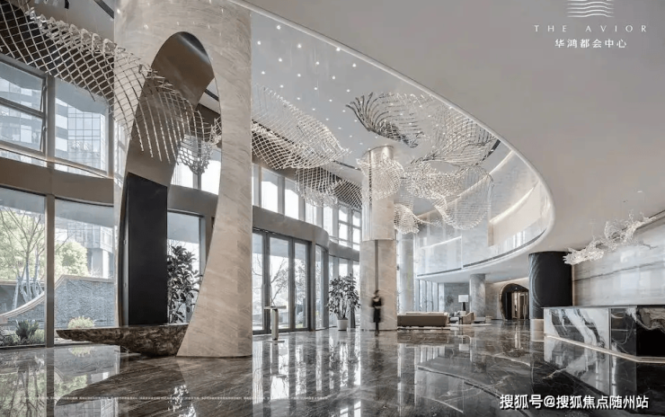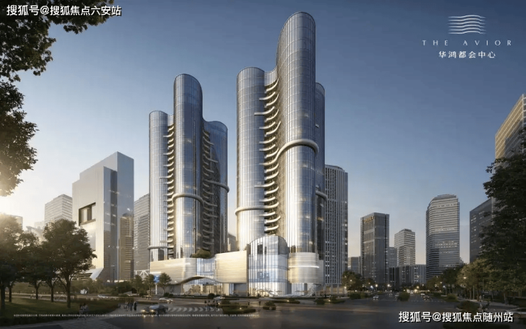 华鸿都会中心大平层以“三叶草”为建筑原型,设计独特,每户都能享受270度的环幕都市景观。建筑外立面采用高品质材料,融合玻璃幕墙与黑金花石材,营造出一种现代而奢华的视觉效果。