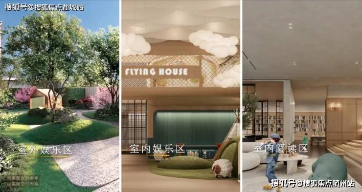 润樾的儿童区有上千个平米,很少会有楼盘给到孩子们上千平米的互动空间,但润樾的儿童区,空间大是次要的,最关键的是设计师在这上千平米的空间当中填充了无数个细节。首先它在空间的分布上分成三个主题,室外娱乐区、室内娱乐区、室内阅读学习区。
