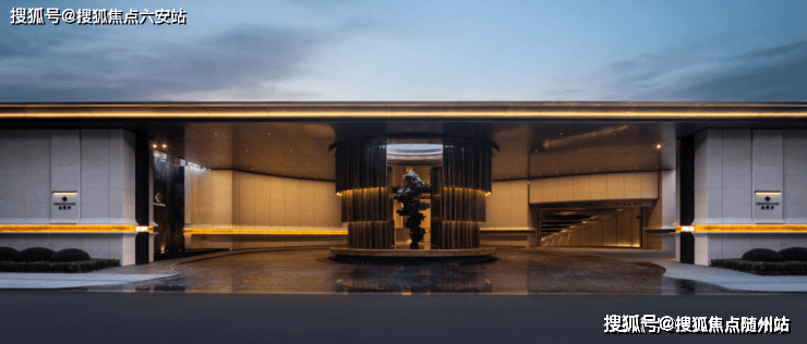 第二重门厅参考台北嘉佩乐酒店的叙事风格,以一座环形的前场庭院作为业主归家的情绪整理空间。环岛落客区打造“天光云廊”,营造从繁华到宁静的空间过渡,开启度假般归家体验。