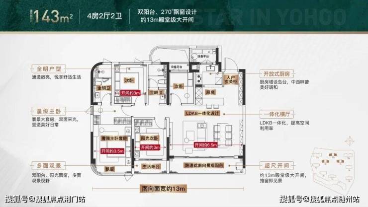 约13米南向面宽+约6.5米阳台,约27㎡LDKB一体洄游社交场,