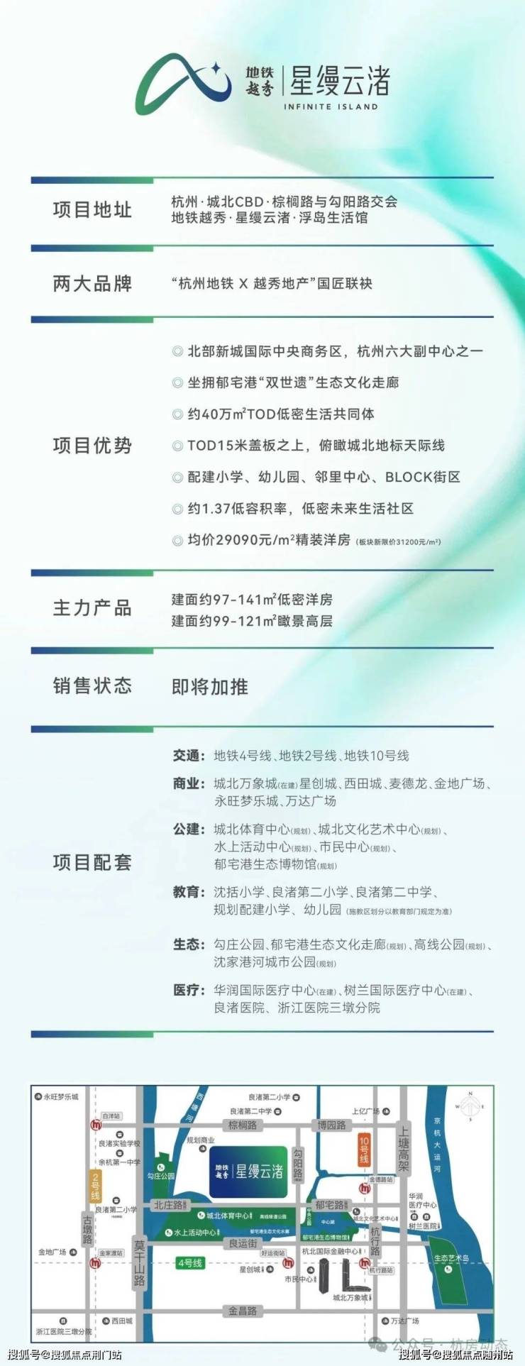 教育:自带15班幼儿园+30班小学(规划),引入理想教育集团;1.5公里内沈括小学、良渚第二中学优质资源环伺。