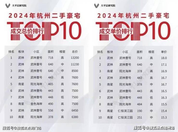 过去10年,杭州5万以上的市场滨江占比份额约53%,6万以上的市场滨江占比约70%。2024年杭州华宅二手房单价&总价前10名,均来自滨江;萧山三个3000万起步的顶豪楼盘,其中观湖里、湘湖壹号,这2个均来自滨江。