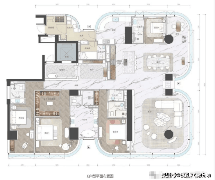 大平层主力户型375㎡+100:总价格1800万左右起售,空间设计:五房二厅六卫配置,实现动静分离、中西厨分离及主仆动线独立。