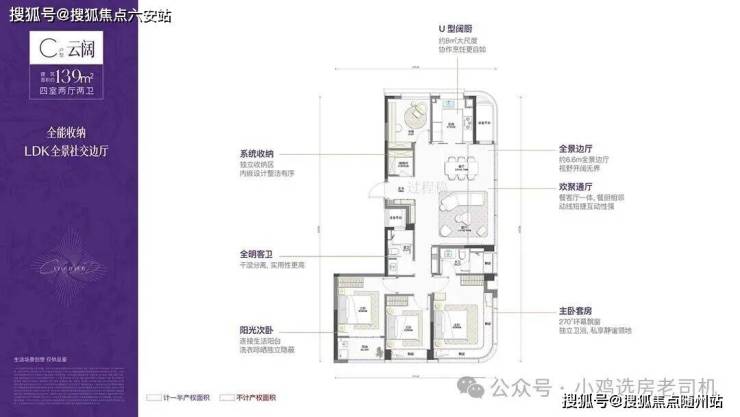 139㎡:空间感强,主卧带270°转角飘窗,采光视野俱佳;