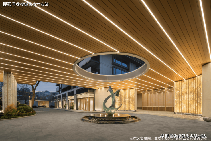 比如它的单元大堂,地面不是简单通铺,而是用上了定制波浪纹地砖,再用弧形金属波打线收边,质感特别高级。