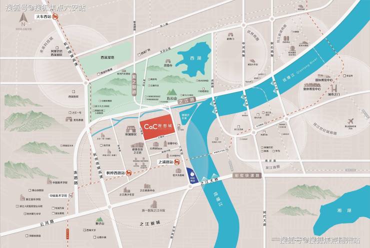 CoC理想城位于杭州市西湖区,周边临近十大新城之一之江新城、规划商务区CBD、万亿独角兽蚂蚁集团,并毗邻年客流1000万+宋城旅游区、西湖景区、龙坞茶镇、钱塘江等丰富的自然人文条件,区位优势明显,坐享多重高定位发展利好。