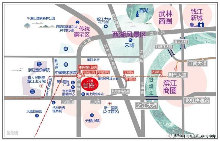 【地铁6号线美院象山站】距离地铁 6 号线象山美院站约一百余米(2020年10月通车),途经火车东站、奥体中心、钱江世纪城、滨江,实现与主城互动!至2020 年亚运会之前杭州 10 条地铁线将全面贯通。届时 6号线可以和 1、4、5、2、7、9、号线换乘,可以说乘坐地铁就可以通达全杭州。