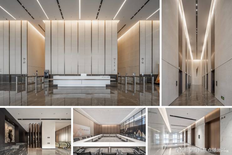 |恢弘首层+空中双大堂设计|约8.7m双层挑高首层大堂+跃38高层空中大堂,创领商务新风范。