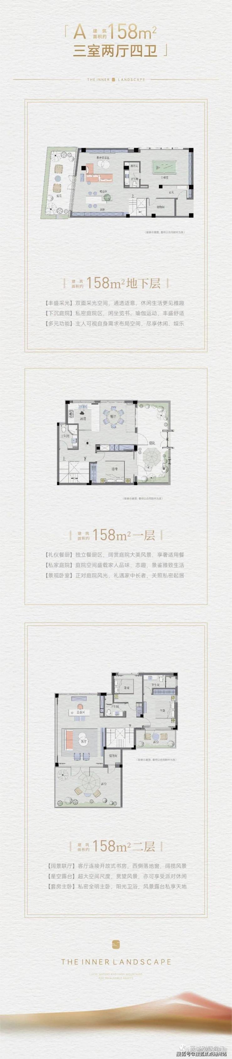 入门“翠松清涟,漱流枕石”,入园“金翠楼台,水镜绿庭”,向内“亭台枕水,飞流而下”,电梯而上出则“坐忘林间,观心思我”,归家“清风雅院,溪山入室”,精妙布局,让风景层层递进,以步移境转演绎身心愉悦的归家之旅。