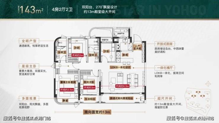 约13米南向面宽+约6.5米阳台,约27㎡LDKB一体洄游社交场,