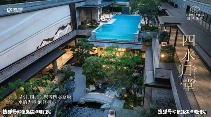 悬挑泳池尤为让人瞩目,创新设计江南岸首个悬挑式无边际泳池,搭配流水幕帘与青玉雕刻的“聚宝盆”,水流潺潺间,不仅度假氛围浓郁,蕴含“吉祥美好”的寓意