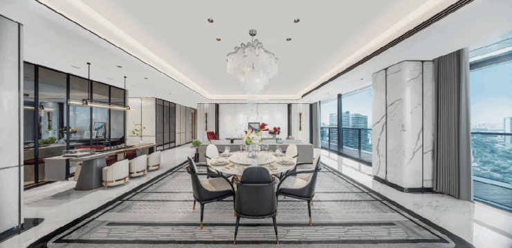 最罕见的当属其奢阔的公区,巍峨的门庭彰显顶序礼制、超五星级酒店式入户大堂、奢装地下三重入户礼序、以及超4000方杭州塔尖双会所配置,于杭州高端物业之中绝无仅有。