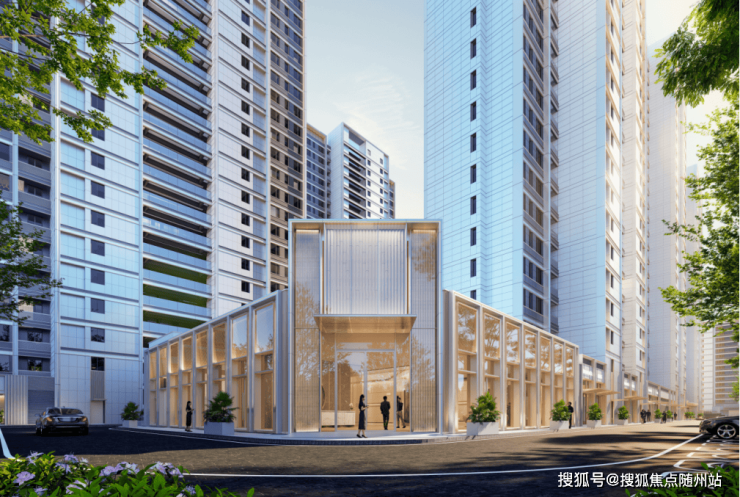 现代简约建筑风格,采用大面玻璃搭配铝板保温一体板,打造“轻盈不失雅致”的隐贵立面。钢琴键般的立面层次感、香槟金铝板塔冠,形成瞩目的城市标识。