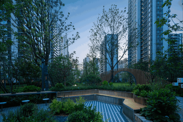 顶配园区:贝尔高林执笔五轴一环六景,中央镜面泳池+樱花大道