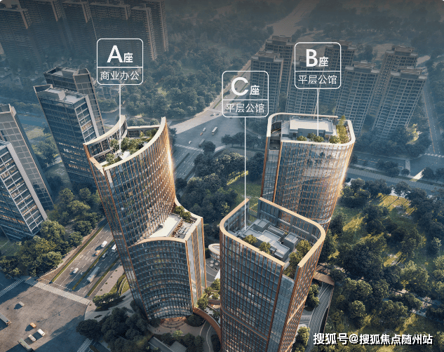 物业构成:整体规划约10万㎡,包含A幢写字楼、B/C幢大平层、D幢商业,其中大平层单独规划,圈层纯粹