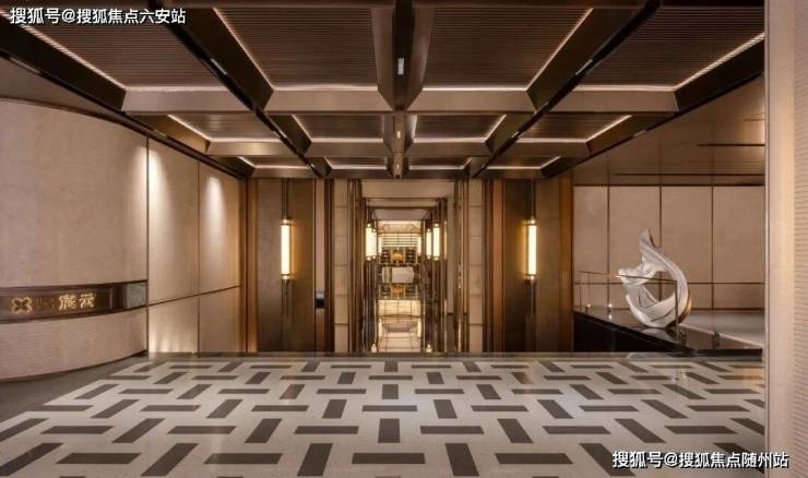 外立面采用香槟银铝板、玻璃幕墙与飞檐挑檐设计,窗墙比超70%,高层整体抬升约4.7米,形成“空中庭院”视野。单元门厅以雪山兰奢石铺就,地下光厅采用金属背景墙与发光云石吊顶,电梯配备人脸识别系统,实现无感归家。