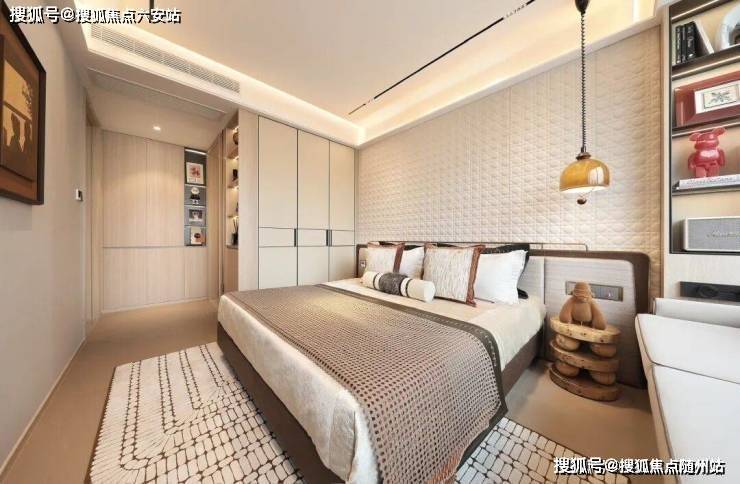建面约107㎡户型,则把重点放在舒适度上。阔绰方厅+双联阳台,通风赏景至佳,还有U型厨房,三面操作空间,动线流畅好用;套房式主卧更配置了步入式衣帽间,独立卫浴设计,保证了主人家的隐私和仪式感。