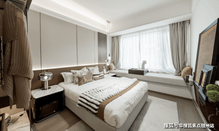 套房式主卧设计:以大尺度空间承载诗意生活。独立卫浴可卸下一天的疲惫,让身心得到彻底放松;观景飘窗设计,闲暇时可静坐于此,捕捉一缕暖阳、远眺一方园景,典藏专属私人天地,邂逅不期而遇的美好。