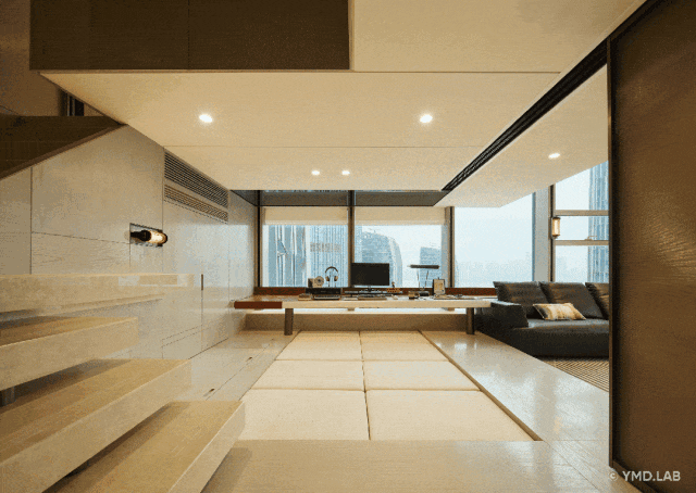 下层是向世界微微敞开的 「全场景SHOW场」 。「南向乐享厅」 承接充沛阳光,可随心境定义为咖啡角、阅读区或好友小聚的客厅;